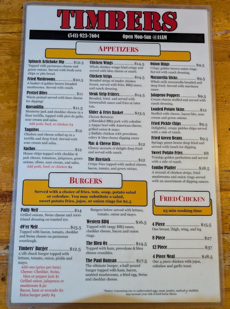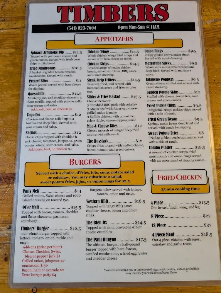 Welcome to Timber's Bar & Grill Redmond, your go-to destination for a delightful dining experience in the heart of Redmond, Oregon. Located at 3315 S Hwy 97, we offer a relaxed atmosphere perfect for solo diners and groups alike. Indulge in our excellent cocktails, an extensive selection of beers, and delicious food, all available for dine-in, takeout, or delivery. Enjoy our happy hour specials on food and drinks while playing games or catching the latest sports events. With wheelchair accessibility, ample parking, and a welcoming vibe, Timber's is ideal for families, tourists, and everyone in between. Join us today!